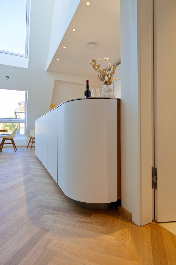 In einer lichtdurchfluteten Dachgeschosswohnung in München durften wir eine Küche realisieren, die in jeder Hinsicht Maßstäbe setzt. Klare Linien treffen hier auf feinste Materialien und durchdachtes Design – eine Küche, die Funktion und Ästhetik perfekt vereint.