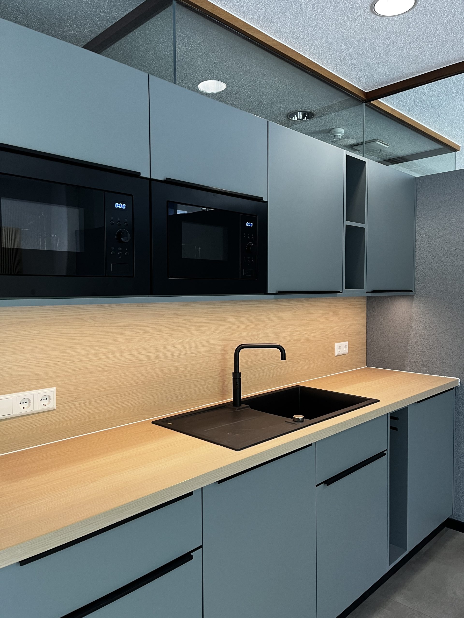 Für ein Unternehmen in Friedrichshafen durften wir gemeinsam mit bürokult eine maßgefertigte Teeküche realisieren – reduziert im Design, durchdacht in der Funktion.